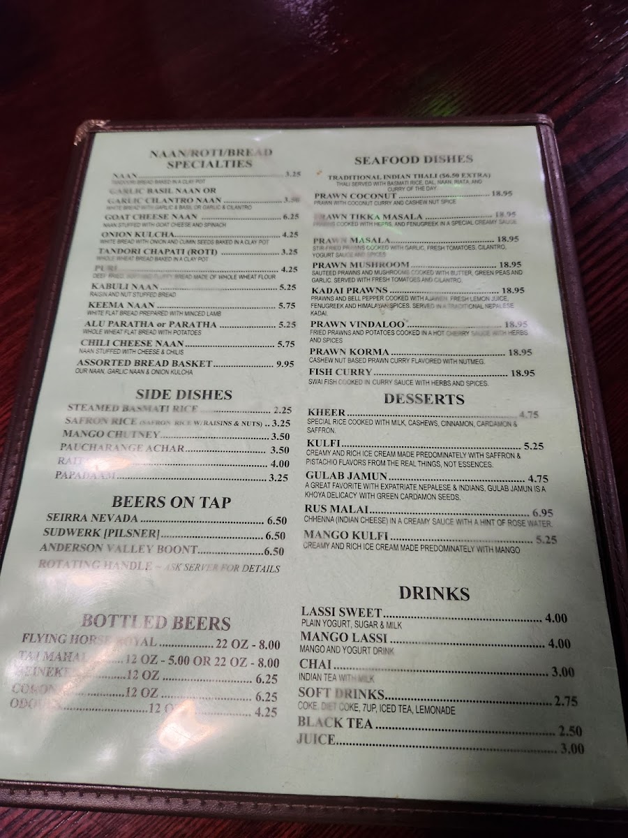 Kathmandu Kitchen, located in Davis, CA, invites patrons to explore a rich tapestry of Indian and Nepali flavors, artfully prepared and served in a warm, welcoming atmosphere. The menu shines with expertly crafted lamb dishes, featuring the Kitchen Special Rack of Lamb marinated in yogurt and spices, and the aromatic Lamb Tikka Masala, infused with herbs and a hint of brandy. The tandoori specials, like the juicy Chicken Tandoori and Seek Kabab, offer a delightful smoky flavor from the charcoal oven. Desserts such as Kheer and saffron-laden Kulfi provide a sweet finish that elevates the dining experience. Customer reviews highlight the exceptional service and genuine hospitality, with many praising the lamb dishes as the standout stars. With a full bar and vibrant ambiance, Kathmandu Kitchen is a must-visit for those seeking authentic Indian and Nepali cuisine.